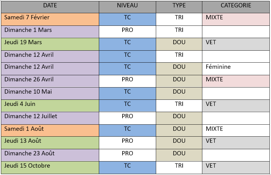 Programme des activités 2026 au boulodrome de Claye Souilly________